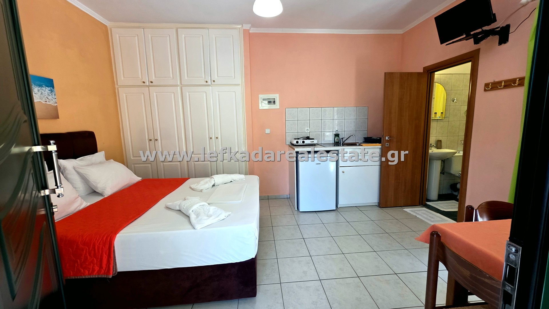 The shared outdoor area includes a 50 sq.m. swimming pool and a BBQ area, along with ample parking space. The hotel also features a reception area, staff apartment, and dedicated storage, laundry, and all necessary equipment for full hotel operations.